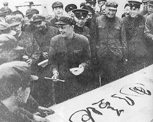 最后,他毅然决定:准时赶往济南。于是,第二天一大早,他按计划直接飞向济南,参加了铁道兵在黄河上的架桥演习。结果,当他第二天从济南返回北京总参谋部大院时,迎接他的竟是铺天盖地的几万张大字报(仅仅一夜之间便能刷出几万张大字报——有人统计是5万张,这在人类的文字书写史上,恐怕还是绝无仅有的!)他被震惊了!就在那一瞬间,他突然觉得自己一下子长了见识,见了世面,因为在他56年的生命历程中,还从未看到过如此波澜壮阔、声势浩荡、怵目惊心、咄咄逼人的“书法大展”!但他很快冷静下来,挺身走进大字报的层层包围之中。他一张一张地看,一张一张地读,从早上到晚上,看了整整一天。