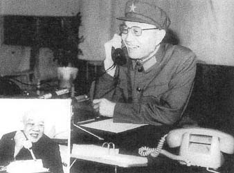 1984年4月,张爱萍在北京通过卫星与新疆通话