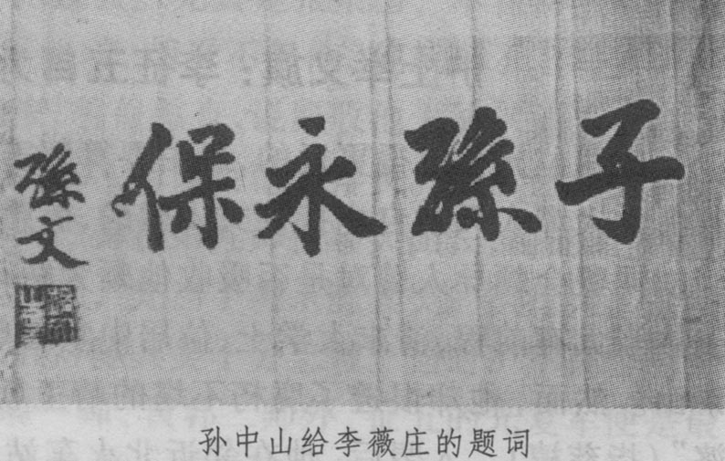李薇庄死后,长子祖韩、次子祖夔将他写在扇面上的《秋夜感怀双定诗》装裱成册,请当年战友和名流题诗作画以为纪念。先后题诗作画者有于右任、李平书、王一亭、沈曾植、袁克文等30余人。现存的尚有任重专为他辛亥被囚一事所作的《吴门谪居图》,以及林琴南为他毁据之举所画的《焚券图》等。其中,蔡元培的题诗最能道出此中真相:"家藏遗墨在,一发耀秋晖。朗抱见风月,幽怀想蕨薇。人间多可恨,尘世复何依。忍忆谪居处,龙孙几度肥?" 蔡又题款日:"辛亥岁季,薇庄先生因事中于小人之谗谪羁苏州府署……"孙中山先生了解此事后,也亲笔题赠"子孙永保" 四字。可惜薇庄原诗和部分书画题作,都在"文革"中散佚了。最令人痛心的是,抄家风匝地而起时,薇庄的三女秋君竟亲手将中山先生题词的上、下款剪掉了。笔者见此残存遗墨,深为长叹不已。