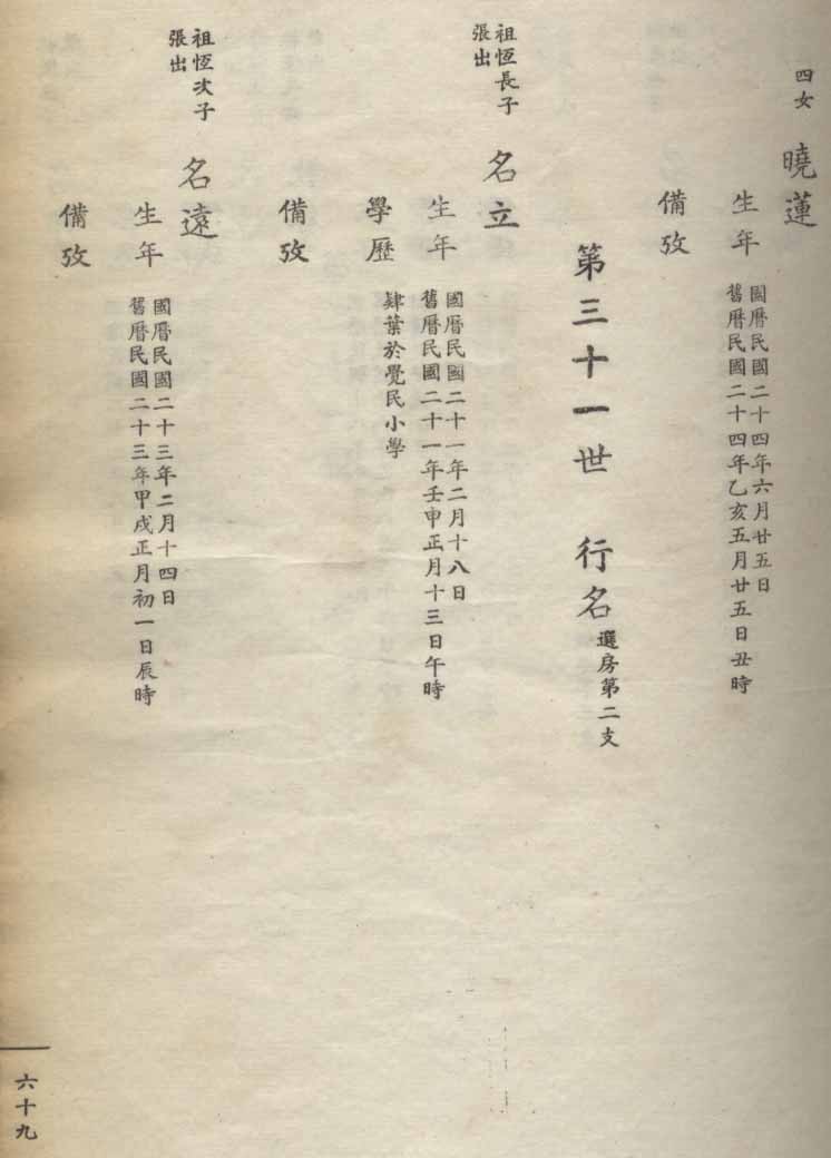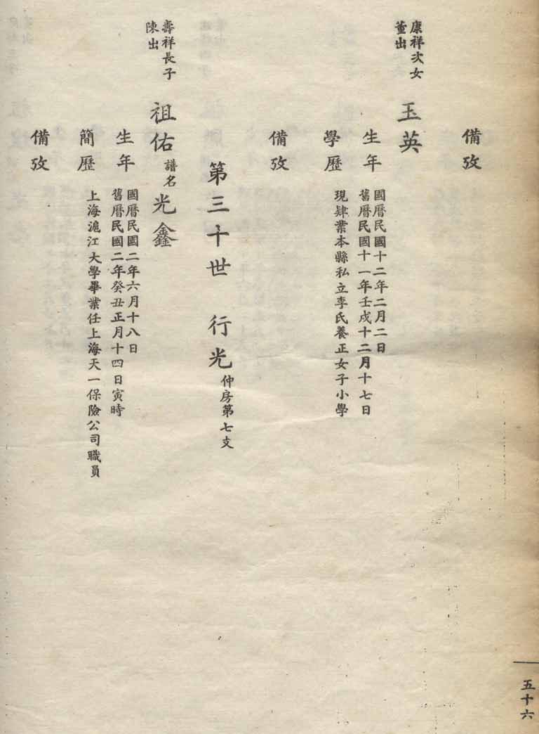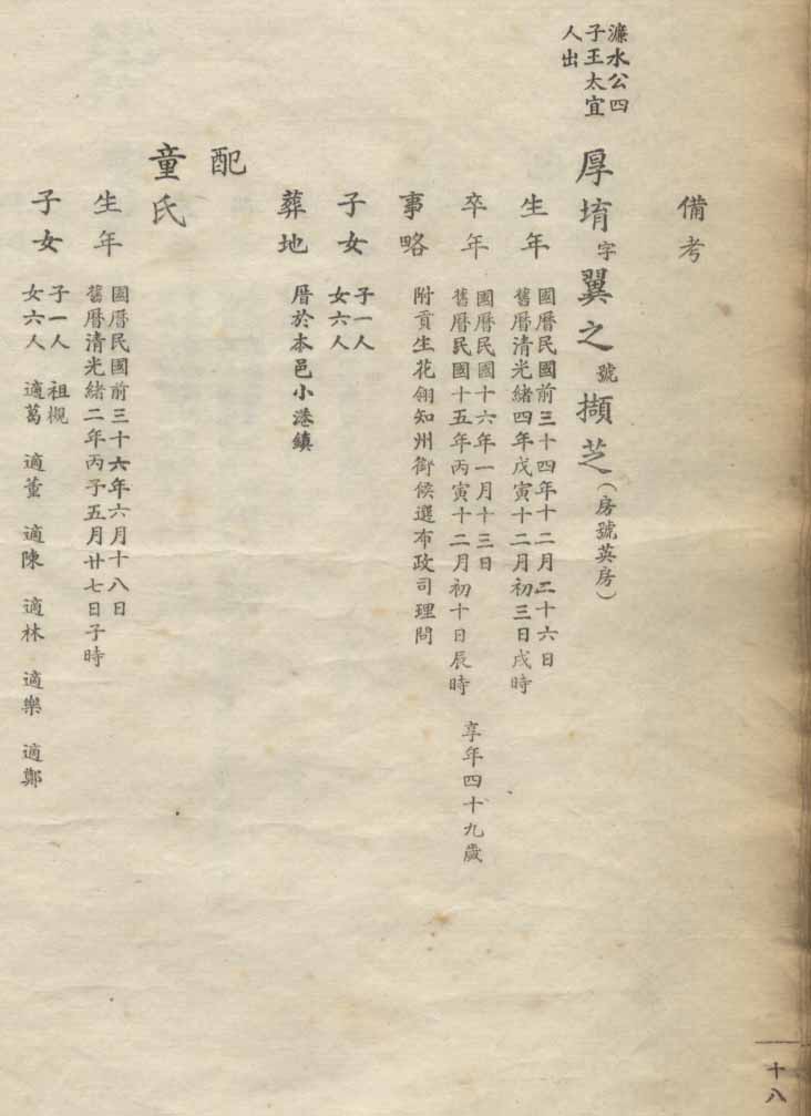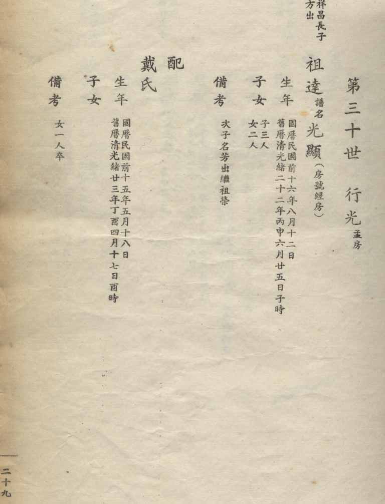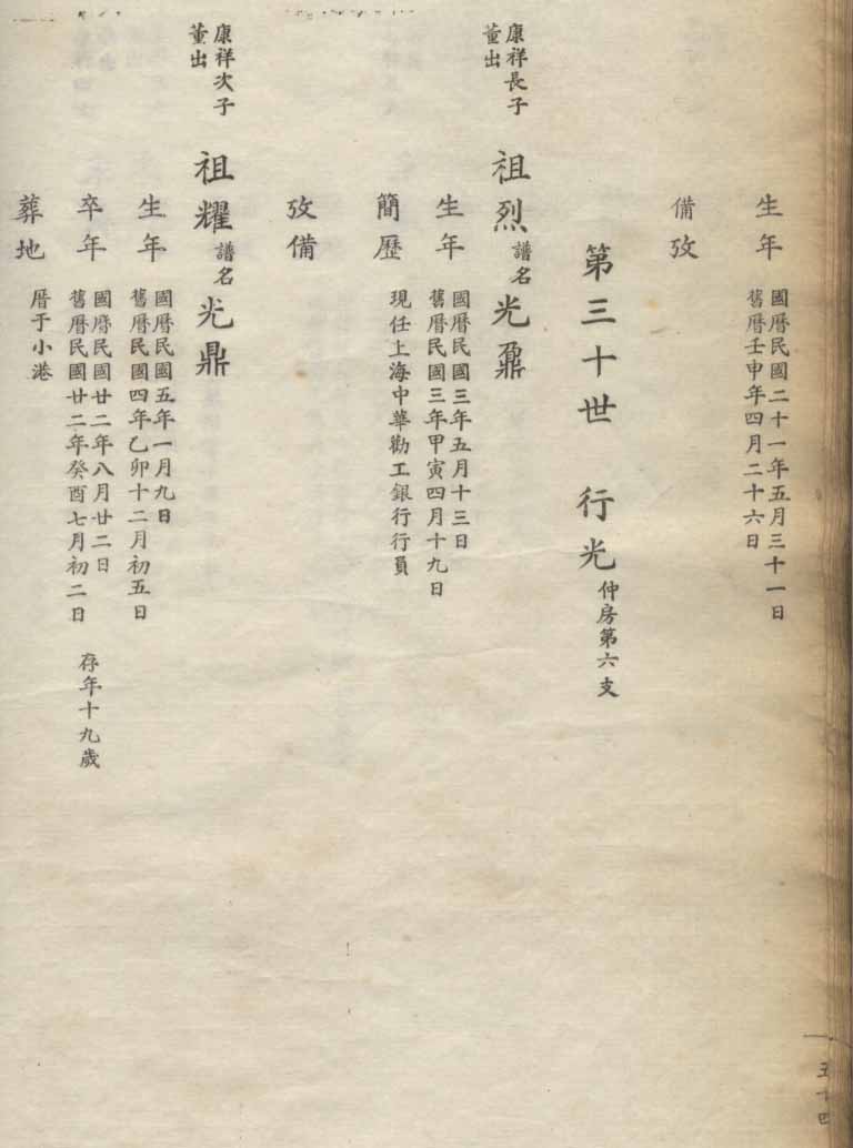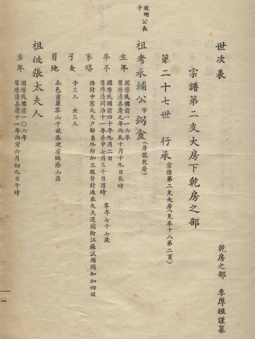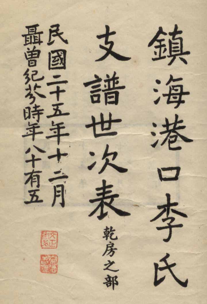 小港李氏1936年编家谱-乾房之部