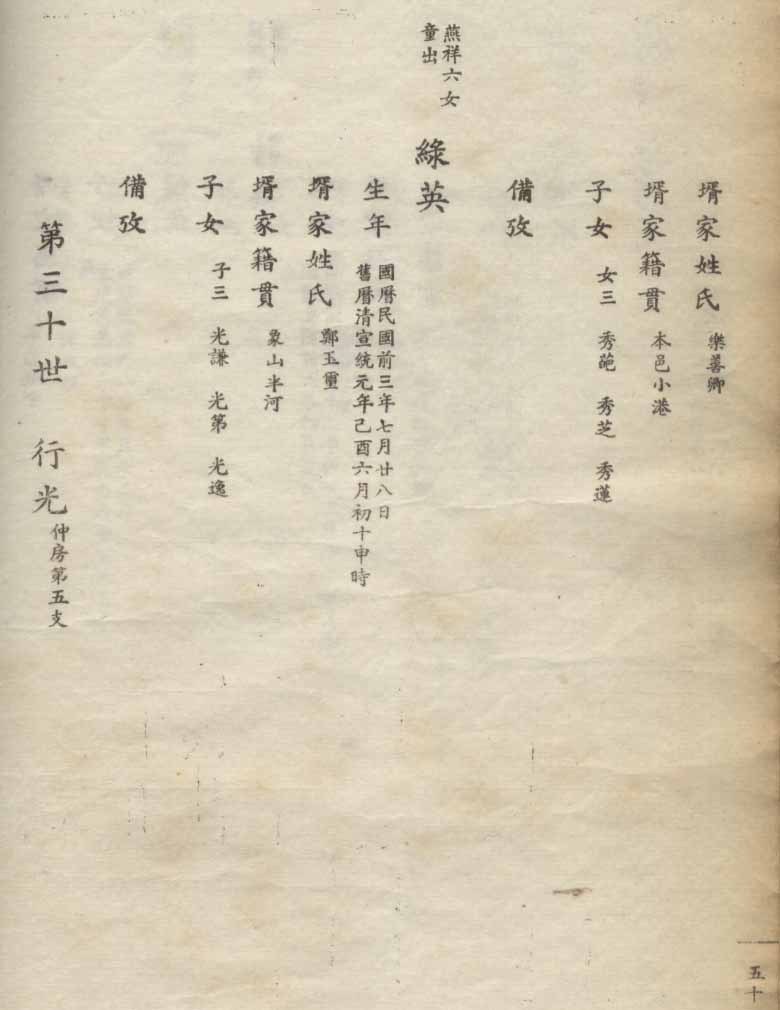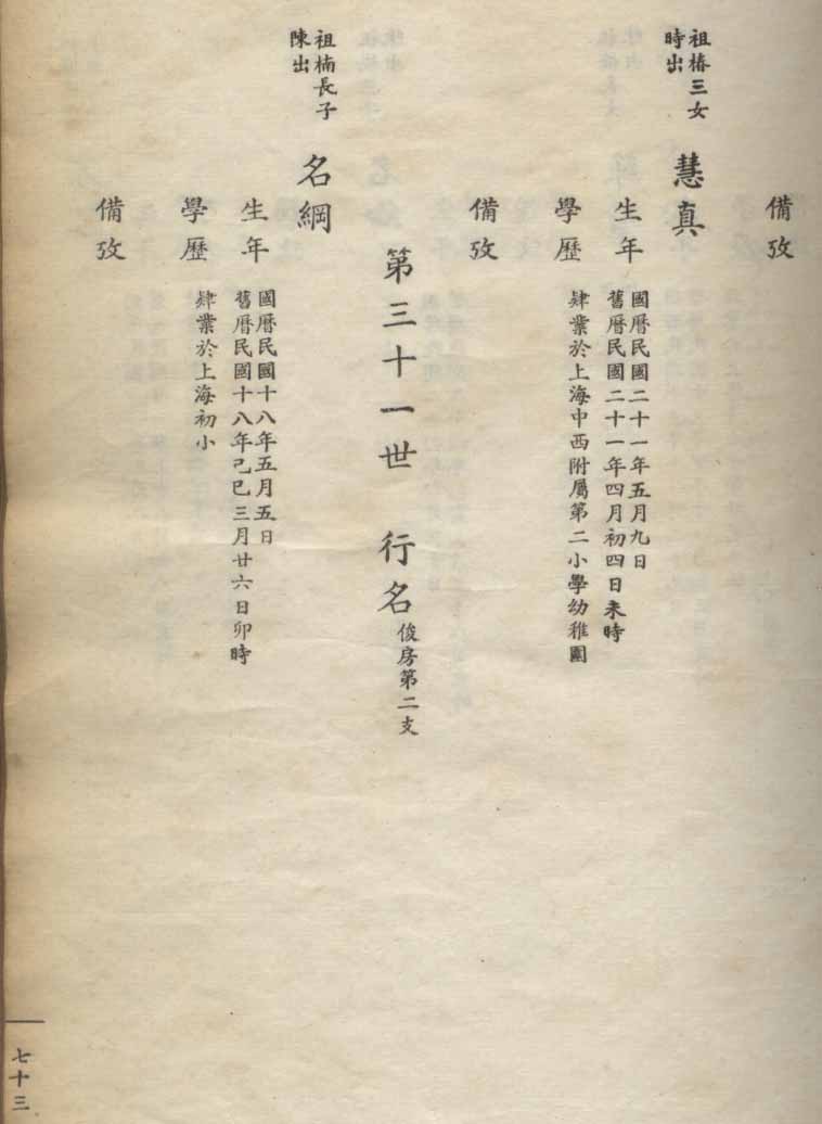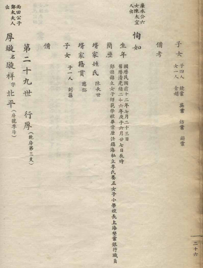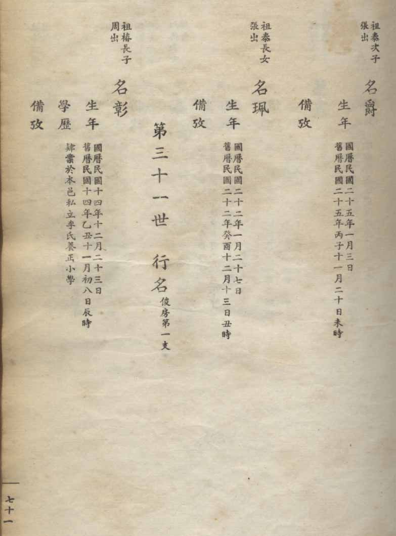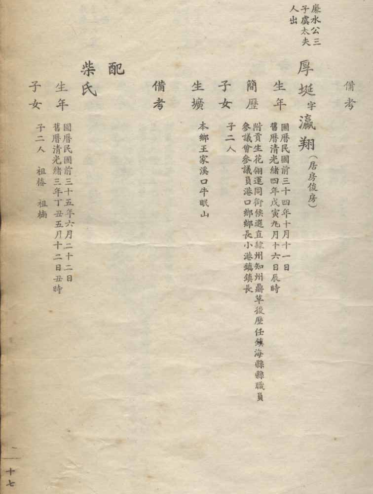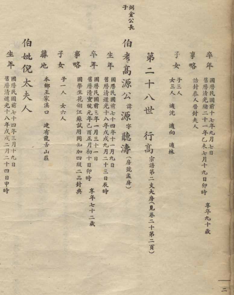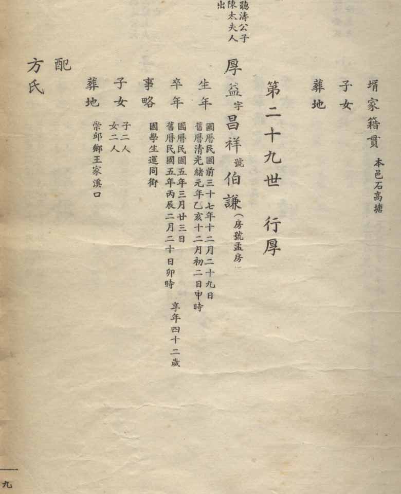 小港李氏1936年编家谱-乾房之部