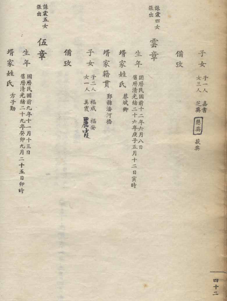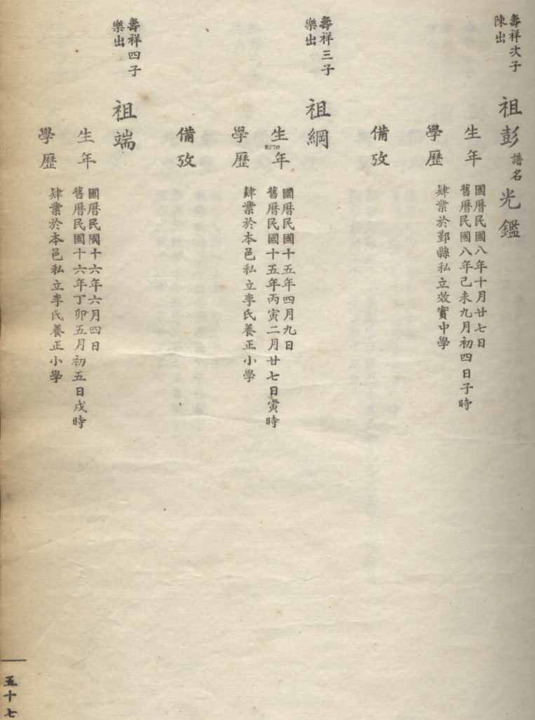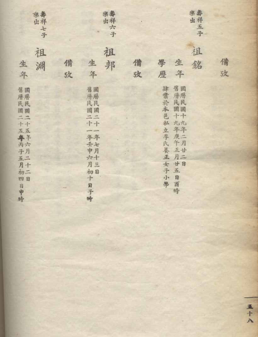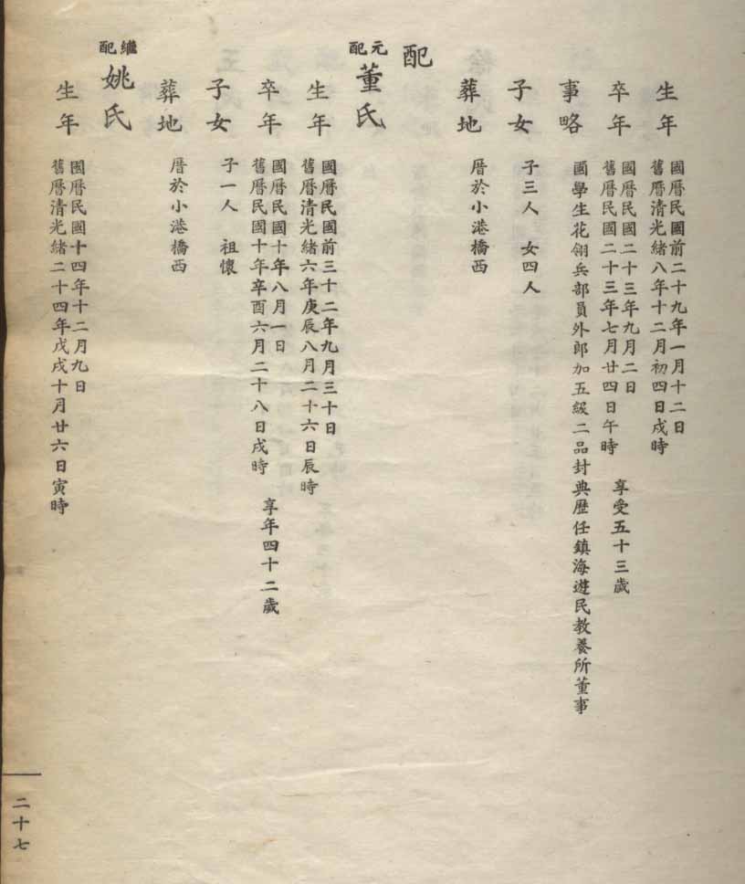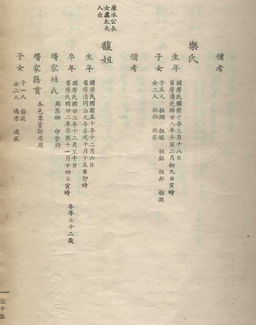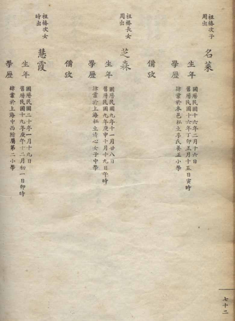 小港李氏1936年编家谱-乾房之部