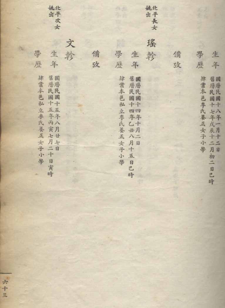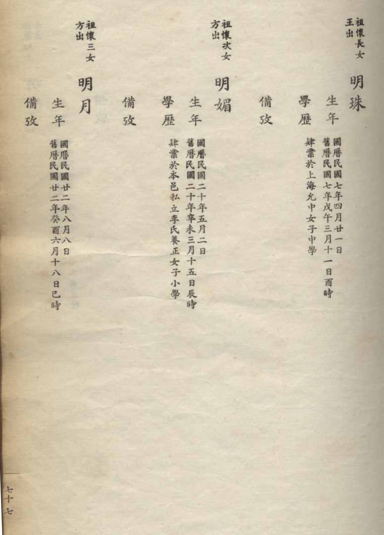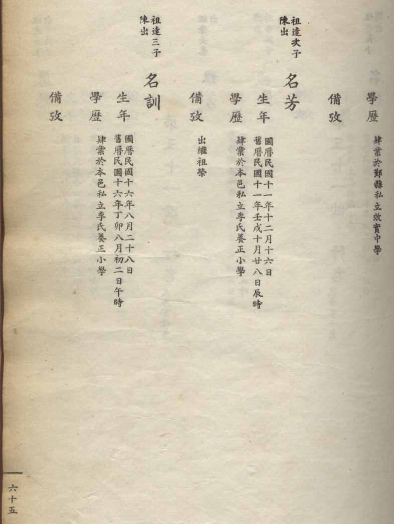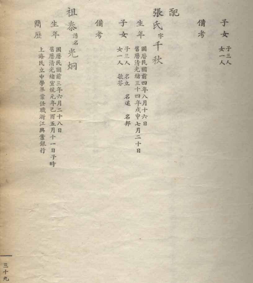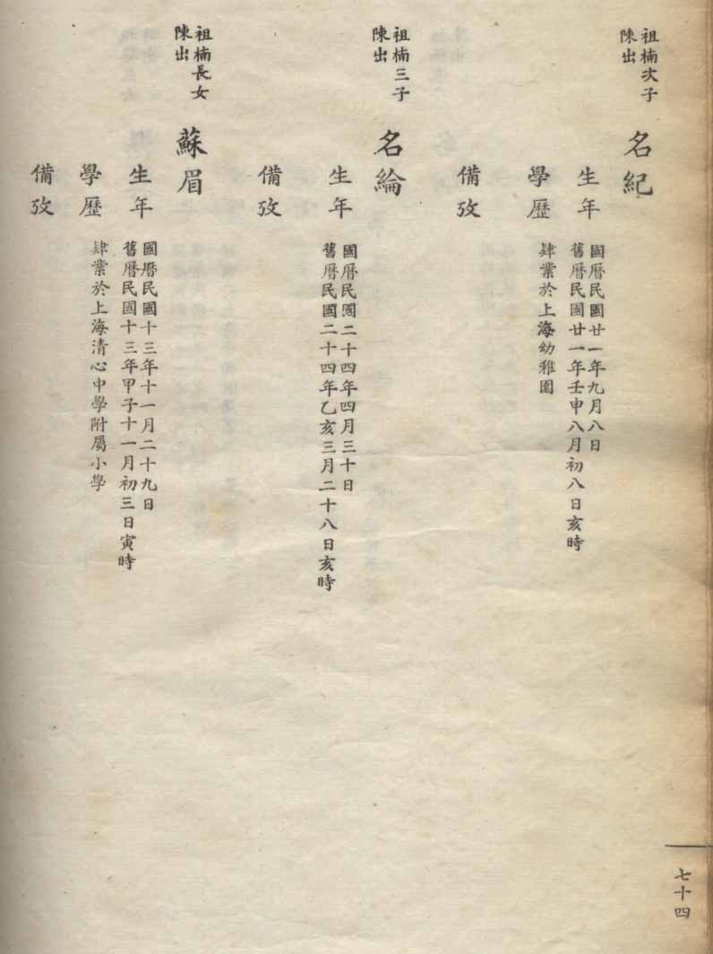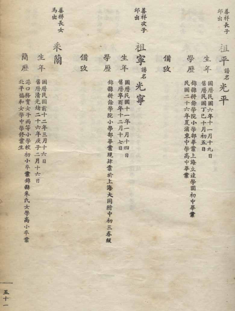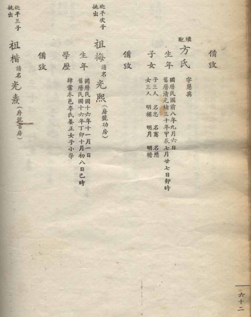 小港李氏1936年编家谱-乾房之部